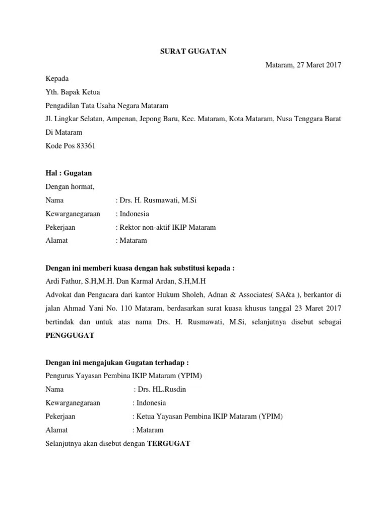 Contoh Kasus Surat Gugatan Ptun Mataram - 2 : Surat gugatan peradilan tata usaha negara.